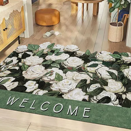 宜品猫北欧风油画丝圈玄关地垫·白玫瑰