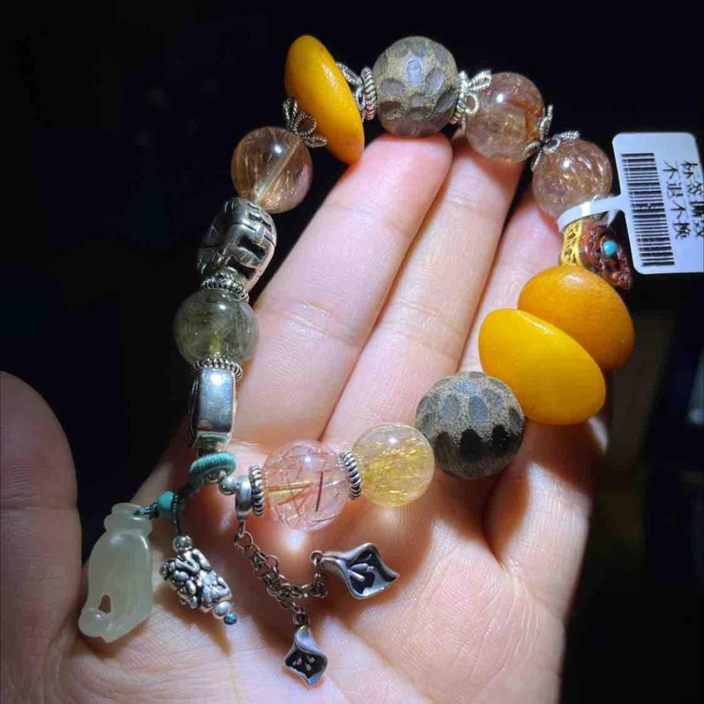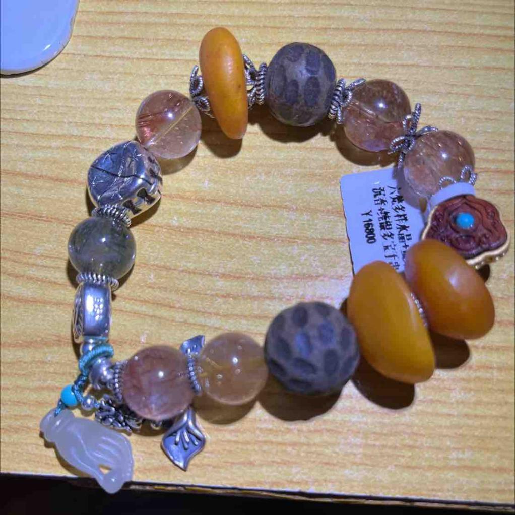 多宝手串:金发晶、绿发晶,红兔毛,很通透,发丝清晰;随形老蜜蜡,在直播间的姐姐影响下,现在看着更像土豆片,嘻嘻;虫漏沉香,真好闻,第一次见识传说中的虫漏。S925银刻件,佛手小提溜,紫檀雕刻件,每一件都不一样,很有设计感。超级喜欢。在六梵的直播间真的很长见识,学到很多知识,而不仅仅在购物。愉悦之赏。