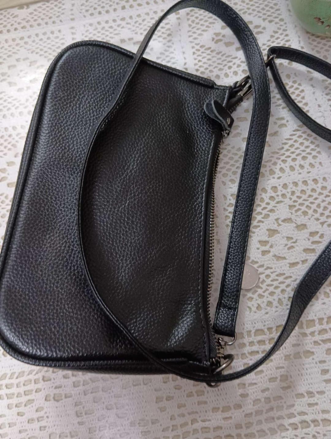 小皮包收到了,是皮质的而且做工很好。喜欢底部加宽能放很多东西