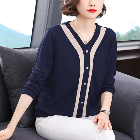 优雅撞色95棉V领长袖上衣,限时秒杀仅99元~