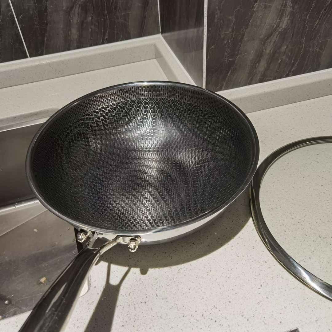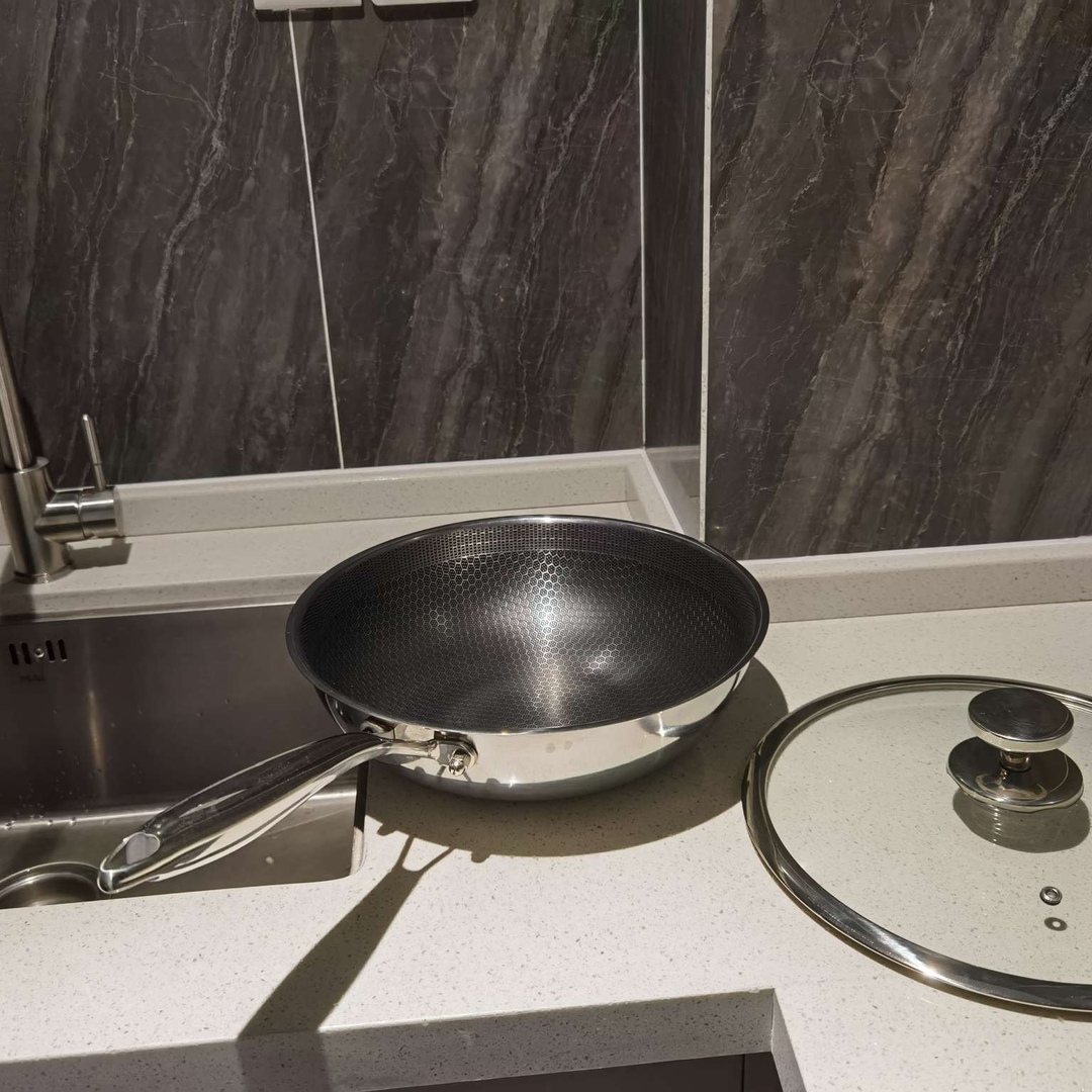 蜂窝纹理,无铆钉设计。 悬浮烹饪,不挑炉灶。 炒菜不沾,色香俱佳。