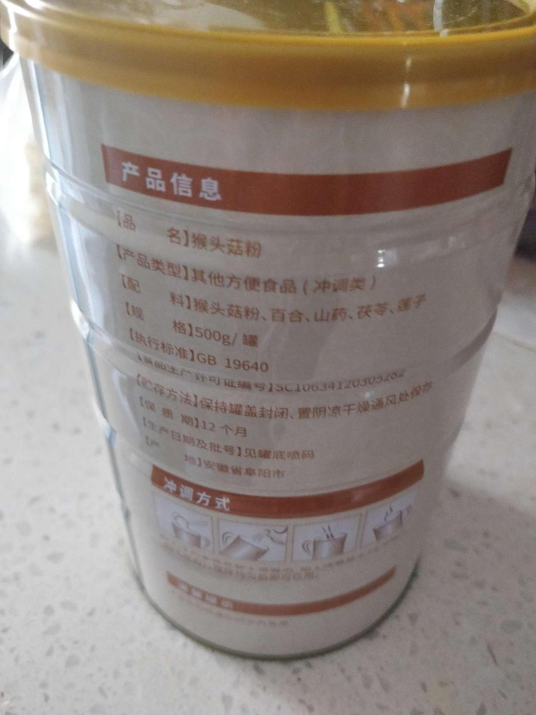 猴头菇粉等多种材质打成的粉,很细腻,冲完水不粘稠很稀的,先用着看看效果吧。