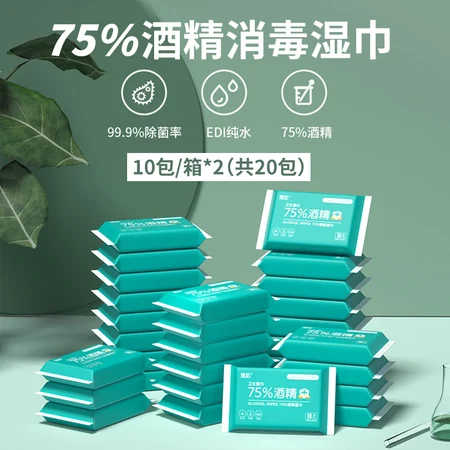 德佑75%便携酒精湿巾 10包/箱*2(20包)