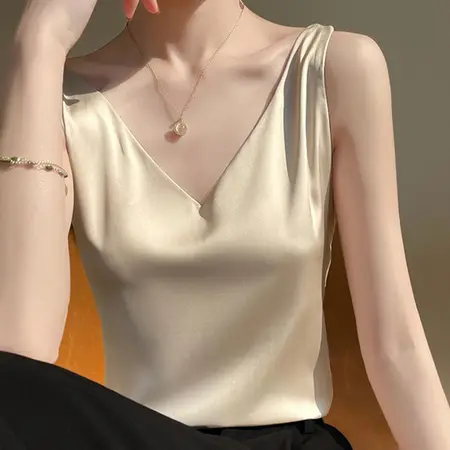宽松吊带,醋酸面料,光滑亲肤,百搭款,内搭外穿都好看,富有桑蚕丝般的亮泽度。