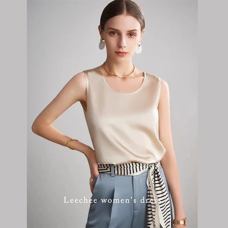 【春夏爆品】辑里湖丝女宽松桑蚕丝无袖背心真丝上衣·肤色