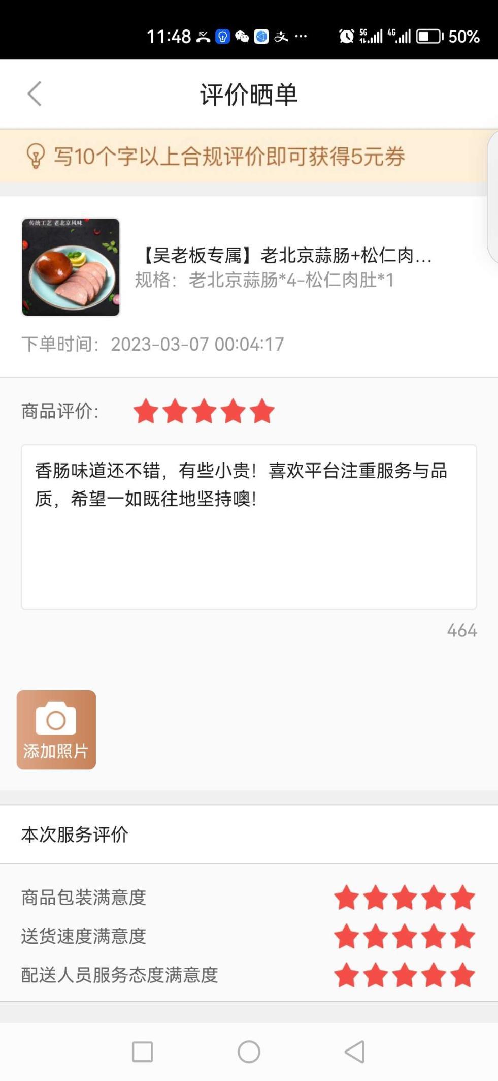 香肠味道还不错,有些小贵!喜欢平台注重服务与品质,希望一如既往地坚持噢!