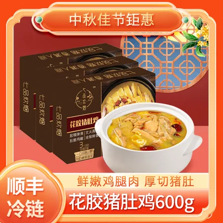 七品炊烟 花胶猪肚鸡,大块深海花胶配上厚厚的猪肚和鲜嫩的鸡腿肉,带给您前所未有的味蕾盛宴,600g大包装,抓紧抢购,体验