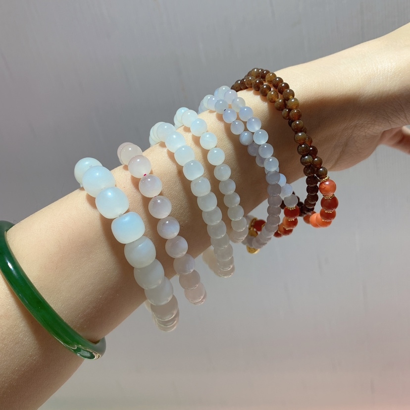 珠子如何选尺寸?什么点位更适合,你选对了吗? 4mm到6mm精致款,单圈会单调,多数都是叠戴,会更显韵味。 7mm到8mm通勤百搭,单圈多圈都可以,优雅秀气。 10mm男女皆可盘,能更好的展现玉的水准,这个尺寸多数是单圈。 测量手围的方法:在手腕最细的地方绕一圈加1厘米就是自己的手围哦!