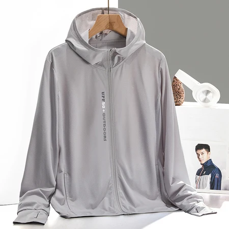 雀说UPF50+防晒皮肤衣连帽弹力男女同款防晒衣 H·男银灰