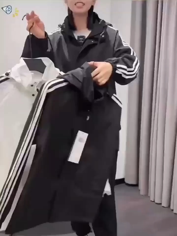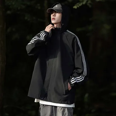 PB时尚三道杠休闲夹克男女同款春秋可脱卸帽风衣1256·黑色