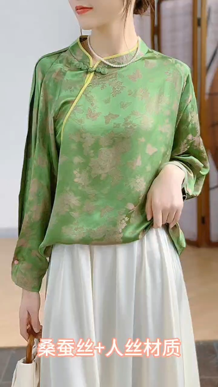 【25%蚕丝+75%人丝】织锦缎偏光美中式上衣