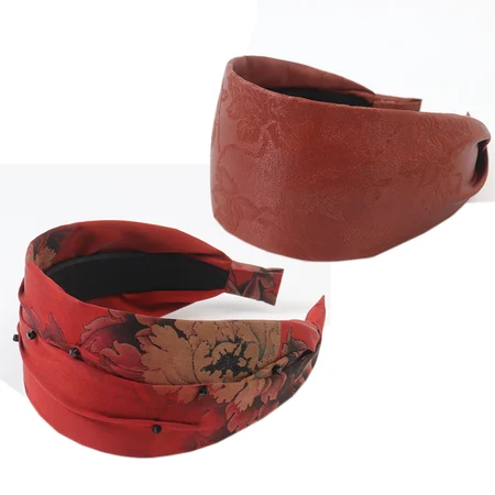 2件装【宽边/香云纱/可遮白发】弹力发箍·红色印花+纯红色