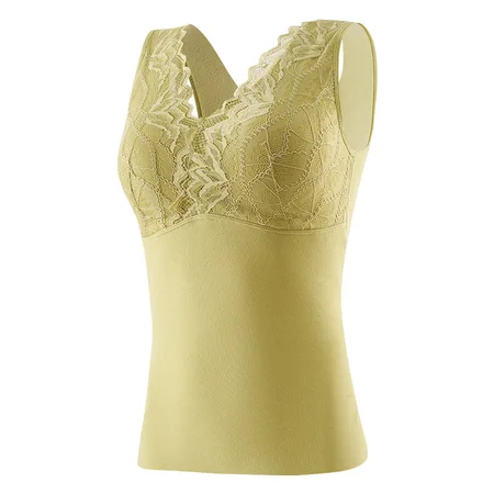 雀说 蕾丝含桑蚕丝保暖背心发热透气打底保暖背心3852·芥末绿