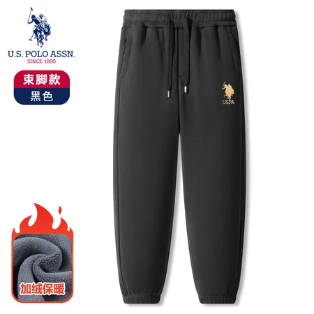 USPA小米尼加绒卫裤(口袋拉链)男女同款K682·黑色【束口】