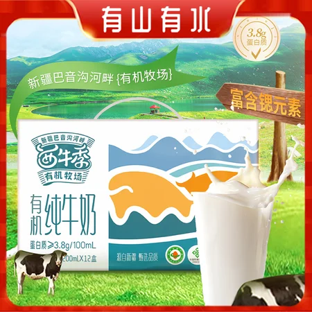【升级3.8蛋白质】新疆西牛季有机奶200ml*12盒