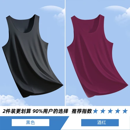 【两件装】男士圆领冰丝无痕背心透气薄款速干无袖衫·黑色+酒红
