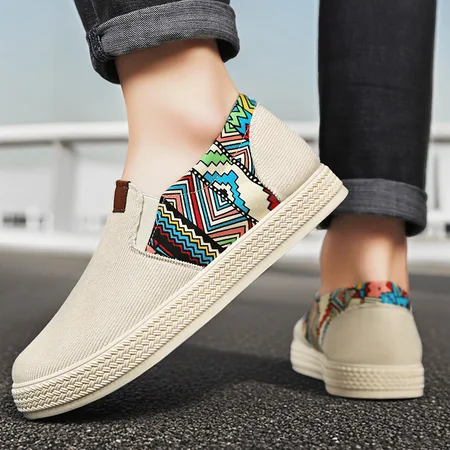 砾驾新款男鞋印花老北京布鞋百搭轻便软底板鞋·KT-B-YD25白色
