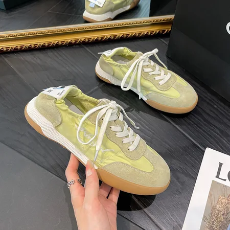 葡萄妈同款真皮休闲阿甘德训鞋夏季透气软底踩跟小白鞋·YBXC-113浅黄色
