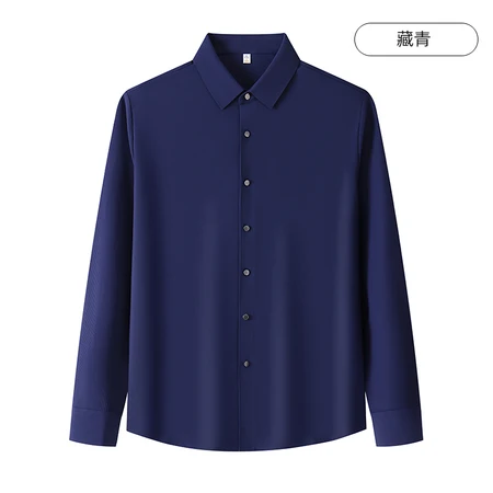 无痕易打理条纹提花百搭长袖衬衫男士亲肤商务休闲衬衣1021·藏青
