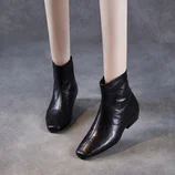 【手抓羊皮】至美轻软轻奢方头切尔西短靴ZM258732·黑色