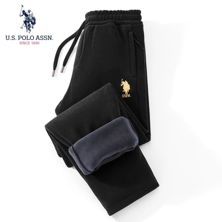 USPA秋冬季含羊毛保暖卫裤细条灯芯绒宽松加厚奥粒绒口袋拉链款K696·黑色(平口)