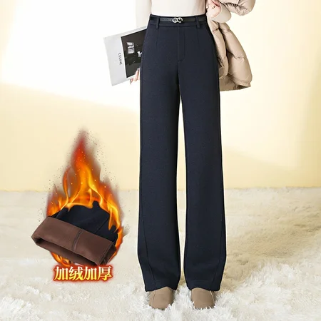 【大牌代工厂出品】和顺圣贝壳条加绒加厚窄版阔腿裤3096·藏青色