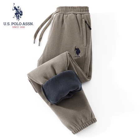 USPA秋冬季含羊毛保暖卫裤细条灯芯绒宽松加厚奥粒绒口袋拉链款K696·卡其(束口)