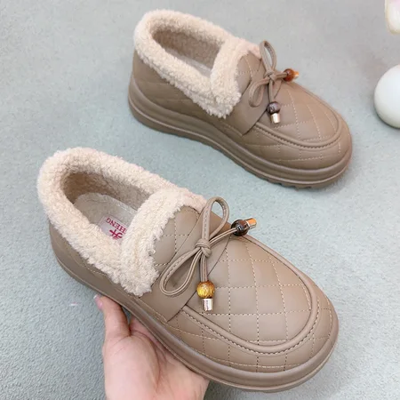 京昇轻便厚底羊羔毛乐福鞋26-3·咖色