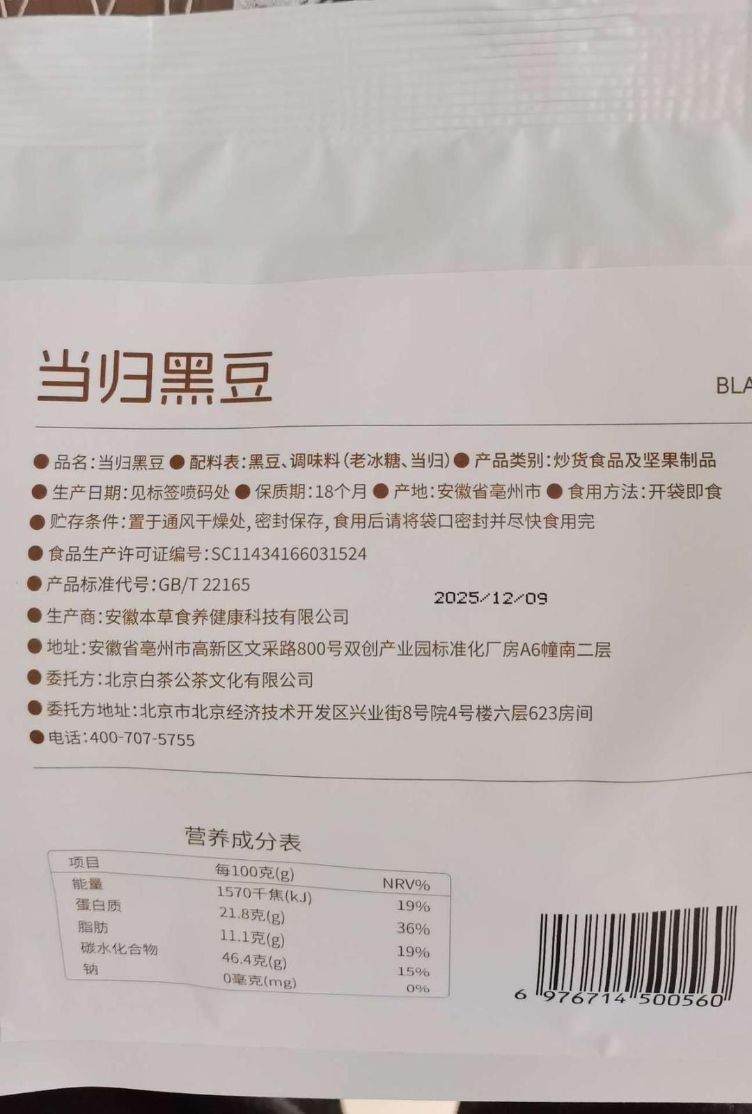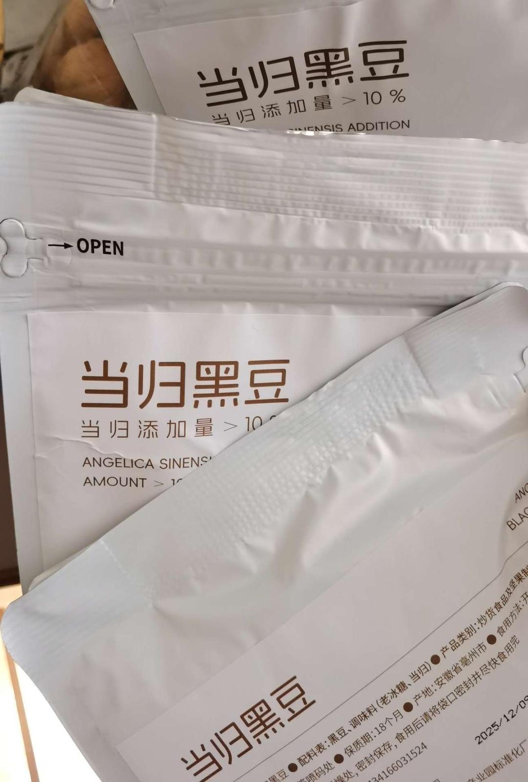夏夏直播间推荐的当归黑豆,一共三袋,以前没吃过,真的挺好吃的,当做零食非常好。