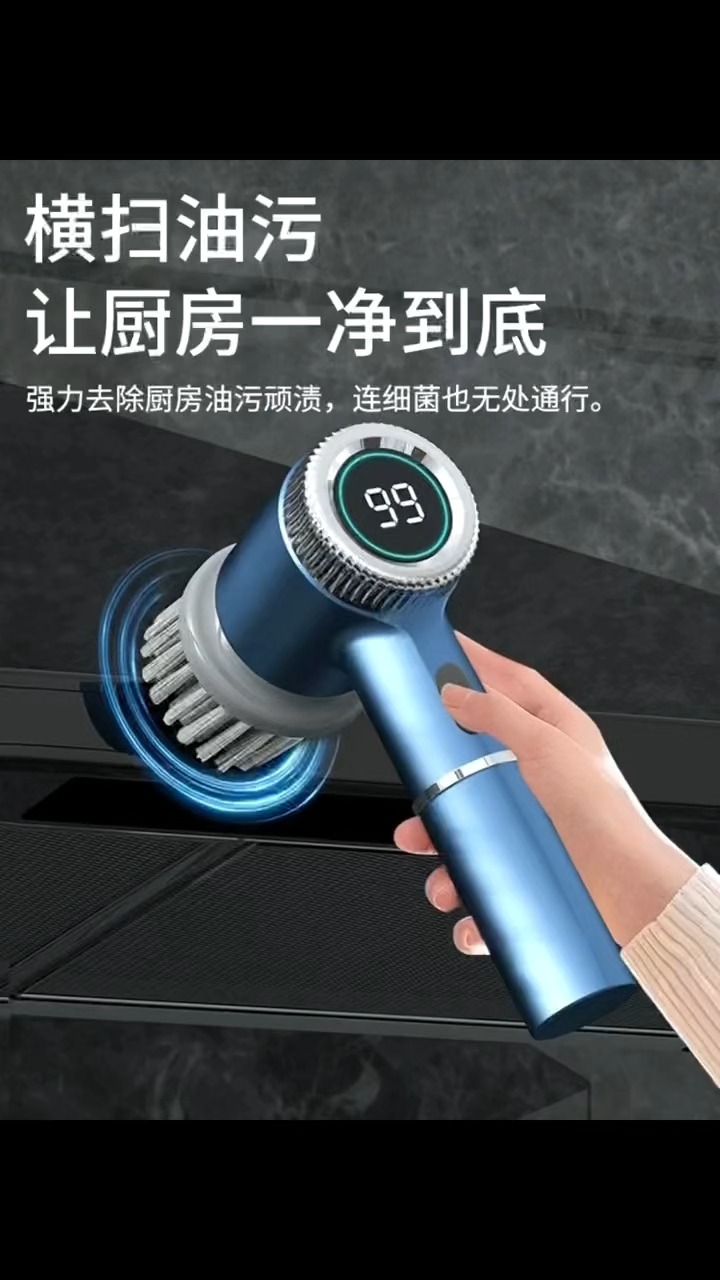 以前刷厨房油污、浴室水垢要费老大劲,现在用它一按开关,顽固污渍轻松刷掉,还能换不同刷头适配各种场景,数显续航也超贴心,家务效率直接拉满!