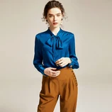 丁摩 重磅真丝蝴蝶结领长袖桑蚕丝衬衫20-38·蓝色