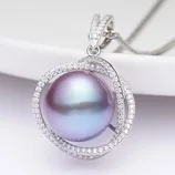京珠部落S925银妖紫色绿光13-14MM大颗粒珍珠吊坠·13-14MM鸟巢款