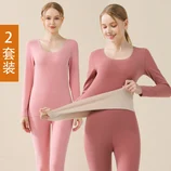 2套装 AB面阳离子磨毛保暖套装·女粉色+橡皮红