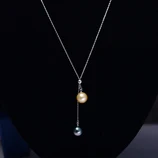 岛上明珠 18K金Y字链双珍珠可调节款·金色+孔雀绿