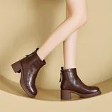 砾驾秋冬新款头层牛皮马丁靴软底软面英伦复古羊毛内里女鞋·NJ-23737-1棕色单里