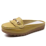 玉露浓 牛皮包头 凉拖鞋·黄色