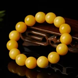 曼丽翠 满蜜鸡油黄蜜蜡13+mm老蜜圆珠手串