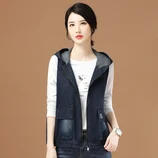 丁摩新款休闲工装潮搭宽松无袖牛仔马甲短外套女上衣D3658·深蓝色