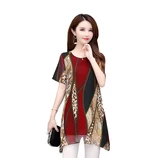 欧奈丝 时尚女士大版型雪纺印花中长款显瘦上衣A1159028·红色
