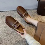 ANYMANNER福利秒杀秋冬新款通勤平底一脚蹬棉瓢鞋·8891-1-棕色扣子