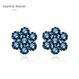 Martine Wester镀白金墨蓝色崔雀花施华洛水晶耳钉·墨蓝色