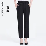 布依琳夏季弹力直筒妈妈裤(2条装)-2124·黑色薄款+米色超轻薄款
