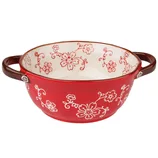 樱花手绘陶瓷碗双耳碗1100ml·红色