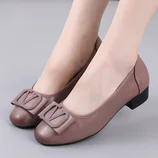ANYMANNER真皮女士时尚百搭方跟单鞋·7765-豆沙色