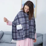 谜存 双面绒口袋懒人毯防寒护肩护腿多功能纽扣披肩·烟灰格