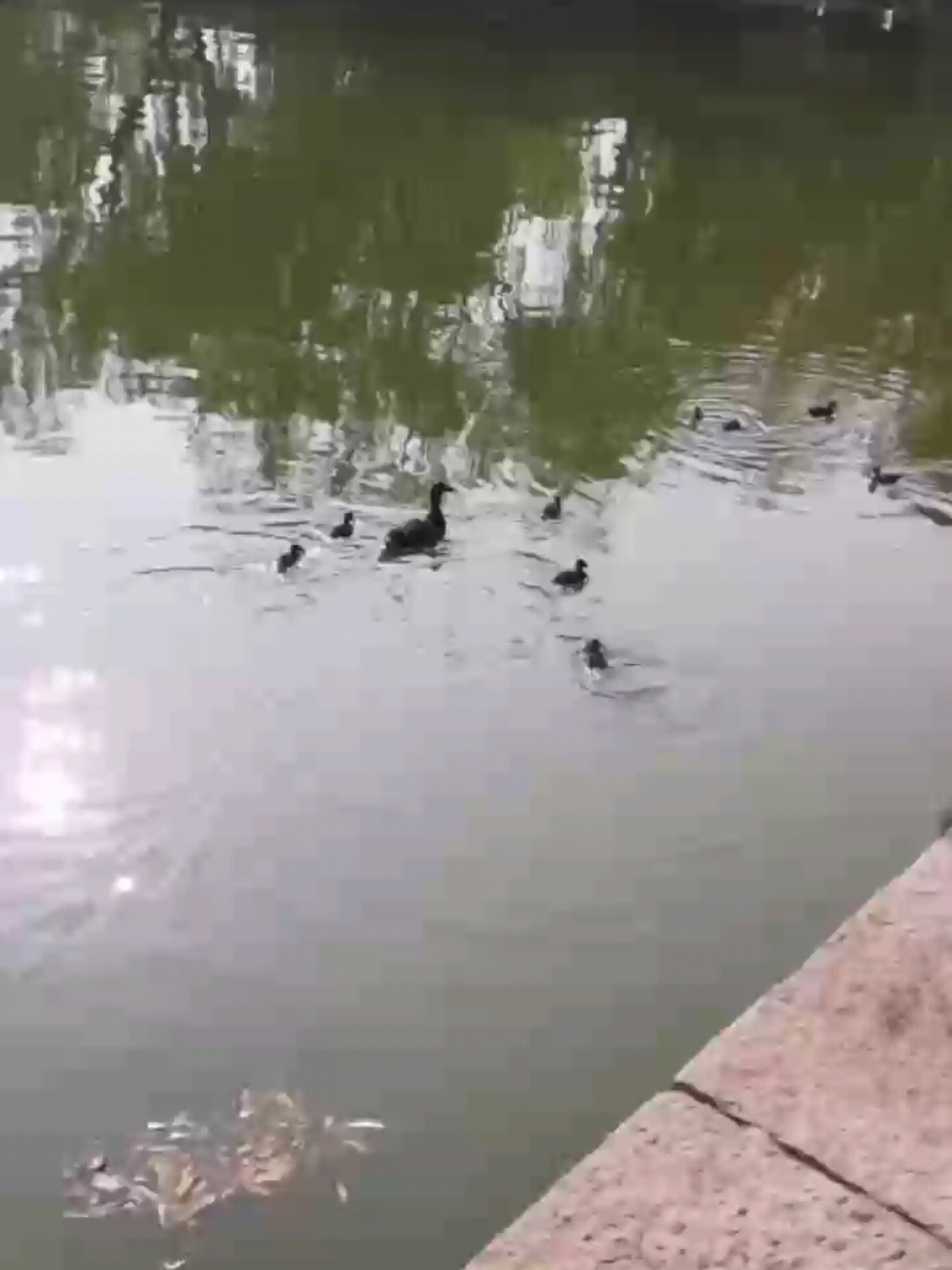 可爱的野鸭一家戏水