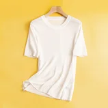 悦晓 夏季真丝针织衫女打底衫高弹宽松S158·白色