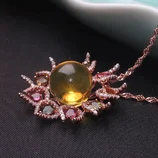 映时蓝珀搭配多彩碧玺太阳花吊坠
