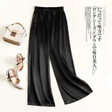玉露浓 高腰垂坠 醋酸光泽感春夏长裤·松紧腰黑色