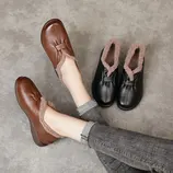 ANYMANNER冬季新款羊毛加绒保暖一脚蹬真皮懒人奶奶鞋·1518-棕色